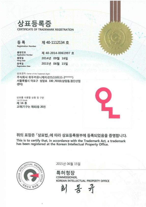 [Korea/Trademark] OLL 16 Class 페이지 정보 작성자 WeDu 댓글 0건 조회 6,412회 작성일 19-06-04 10:46 본문 2015-06-15 Trademark 40-1112134 16 Class List Previous[Korea/Trademark] OLL 09 Class 19.06.04 Next[Korea/Trademark] OLL 41 Class 19.06.04