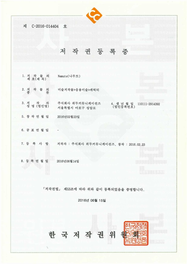 [한국/저작권] 나무트 페이지 정보 작성자 WeDu 댓글 0건 조회 6,532회 작성일 19-05-30 19:08 본문 2016-06-14 저작권 C-2016-014404 나무트 / 미술저작물>응용미술>캐릭터 List Previous[한국/저작권] 리안 19.05.30 Next[한국/저작권] 길리 19.05.30